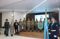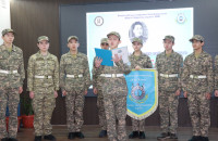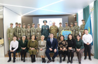 Оқтай тізіліп тұрған жас ұландардың ең алғашқы жауапкершілікке толы қадамдарына, болашақ жас сарбаздарға батагөйлер сайысының жеңімпазы Боқан Мусетов сәт — сапар тілеп, ақ батасын берді.