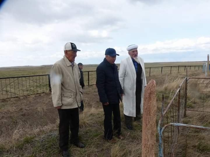 The chief curator of the department of funds of the museum S.Zhuzzhanova, researcher A. Baltabaev within the framework of "Gabdullin readings" conducted lessons-lectures to pupils of 9 and 7 grades. Further, the members of the expedition, accompanied by akim of the rural district named after Angal batyr Amina Malikovna, director of the school Nurlan Amangeldinovich and Mulla Amanbay visited the Muslim cemetery in Koskaragay, paying tribute to the memory of Angal batyr, Zhanbatyr kazhy.